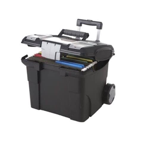 La construction durable en polypropylène combinée aux roues et à la longue poignée facilite le déplacement de jusqu’à 30 lb de fichiers. Le compartiment supérieur avec un couvercle transparent permet de garder vos petits fournitures visibles et accessibles. Les boîtes sont fabriquées à partir d’au moins 25 % de matériaux recyclés post-consommation pour un produit plus durable.